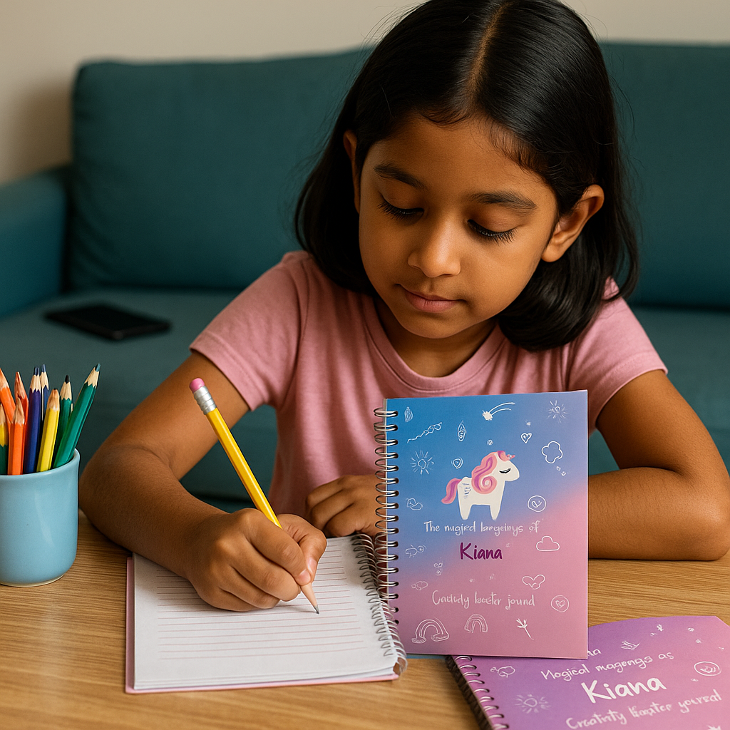 A personalized journal that helps kids build curiosity, express emotions, and develop positive screen-free habits — one fun page at a time! Designed to turn everyday moments into magical memories and set the stage for lifelong learning.